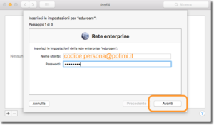Configurazione con Credenziali Polimi – Mac OS X